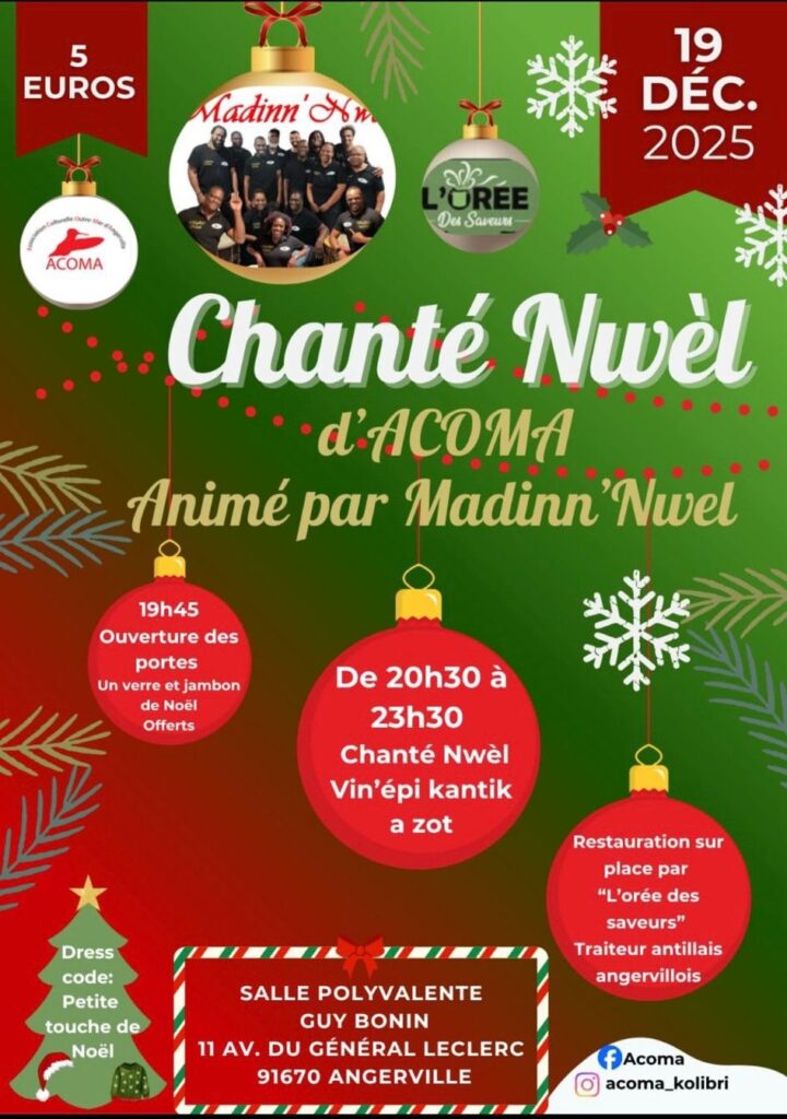 20h30 – 23h30 : Chanté Nwèl “Vin’épi kantik a zot” avec le groupe Madinn’ Nwèl
