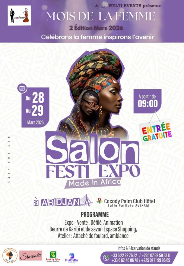 Réservez votre stand dès maintenant pour garantir votre place parmi l’élite créative. Des numéros de contact en Côte d’Ivoire et en France sont à votre disposition pour faciliter votre inscription.”