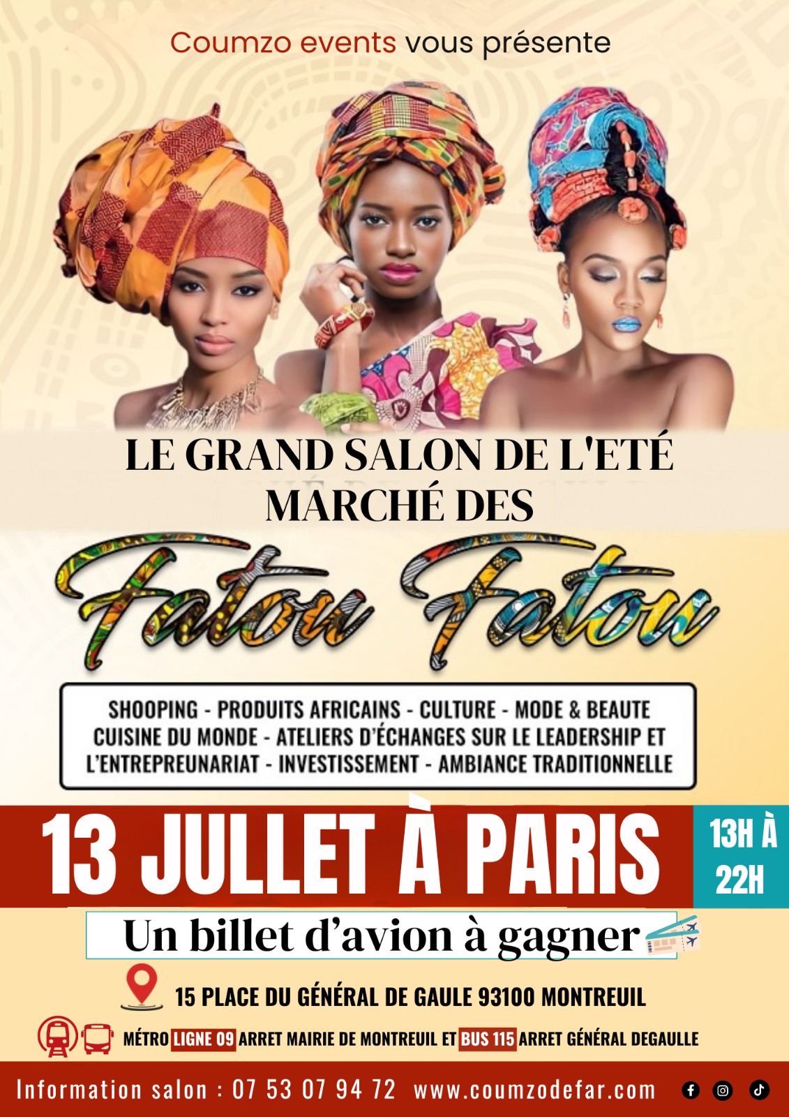Groomers 12 Passage de Saulger, SAINT DENIS, FranceL'Association Club des Femmes et des P'tits Bambins vous présente: Le salon de l'amitié et de la solidarité 21 Décembre de 9h à 20h Au Groomers 12 Passage de Saulger 93200 Saint Denis Contact: 0750582392 Possibilité de prendre un stand hors traiteur Dress code tenu chic et d'élégance africaine ou Caraibéene ou de Roi et […]